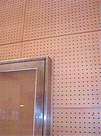 Solid wood panels have a relatively low Noise Reduction Coefficient and reflect most of the sound striking then. This often limits the use of wood in areas when noise reduction or speech privacy is important design issues. To improve the NRC of wood requires the creation of openings in the wood for sound waves to pass through. When perforation are minimally 10% or greater an NRC rating of 0.75 - 0.90 can be achieved with sound absorbing materials.